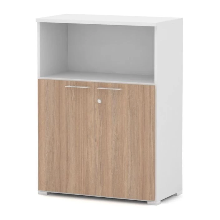Шкаф комбинированный широкий низкий с замком, 80х42х108 Smart Director Дуб медовый/Белый премиум