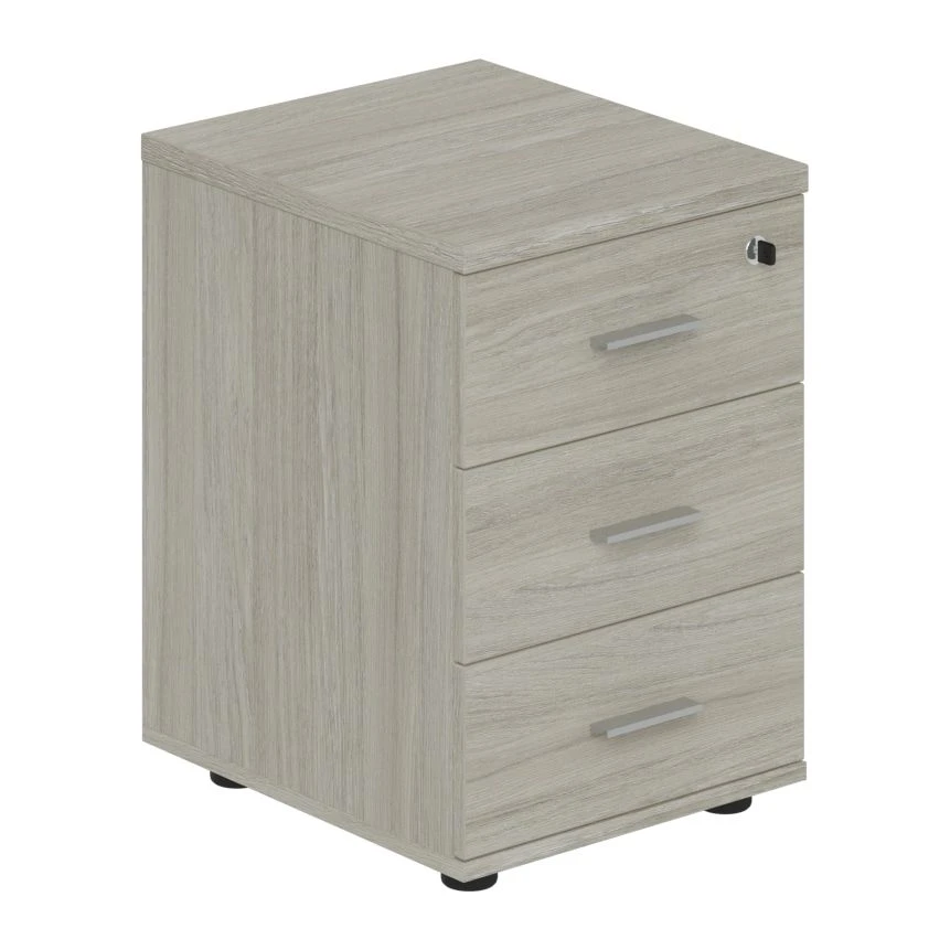 Тумба опорная (мобильная) с 3-мя ящиками + замок Винг / Wing Дуб светлый